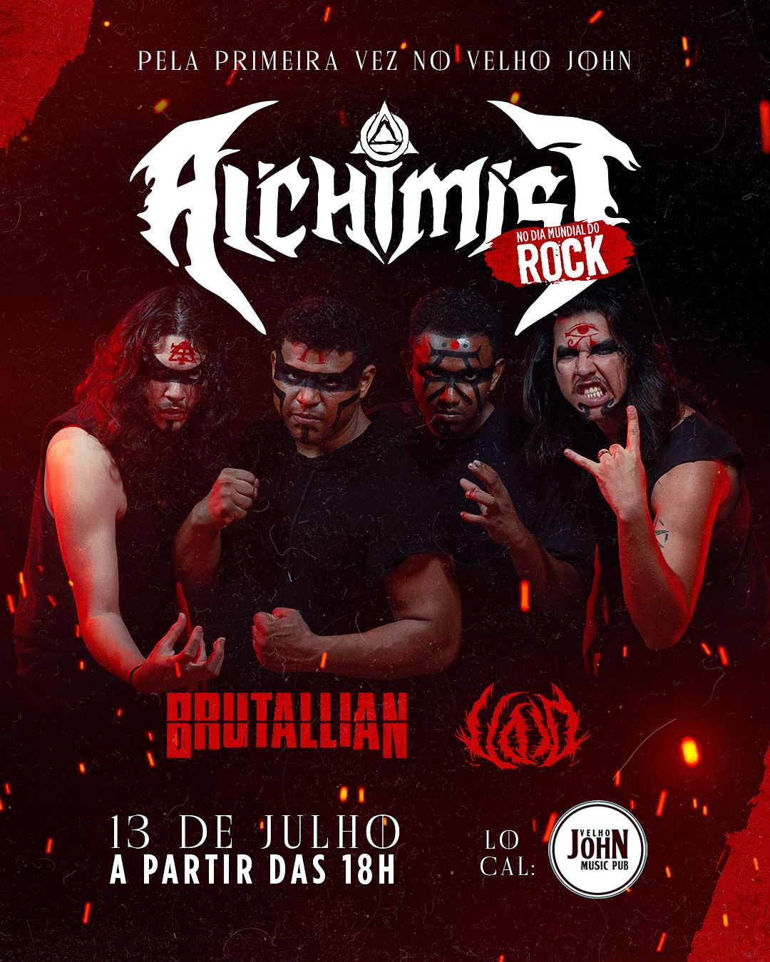 A primeira apresentação acontece no próximo domingo, 13 de julho, no palco do Velho John Music Pub. Em celebração ao Dia Mundial do Rock, o evento reunirá três bandas que representam gerações e vertentes distintas do Metal maranhense: Void, Brutallian e Alchimist. A noite será aberta pela jovem Void, trazendo uma proposta renovadora ao cenário local. Em seguida, o veterano Brutallian sobe ao palco com sua energia característica. Coube ao Alchimist encerrar a celebração com músicas inéditas de seu repertório e um tributo especial ao Black Sabbath, homenageando os pioneiros do Heavy Metal com releituras de clássicos imortais.
