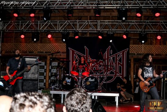 Vindo de Belo Horizonte com um nome já bem conhecido da cena, a banda trouxe seu Death Metal para o público que curtiu bastante bangueando e fazendo moshes.