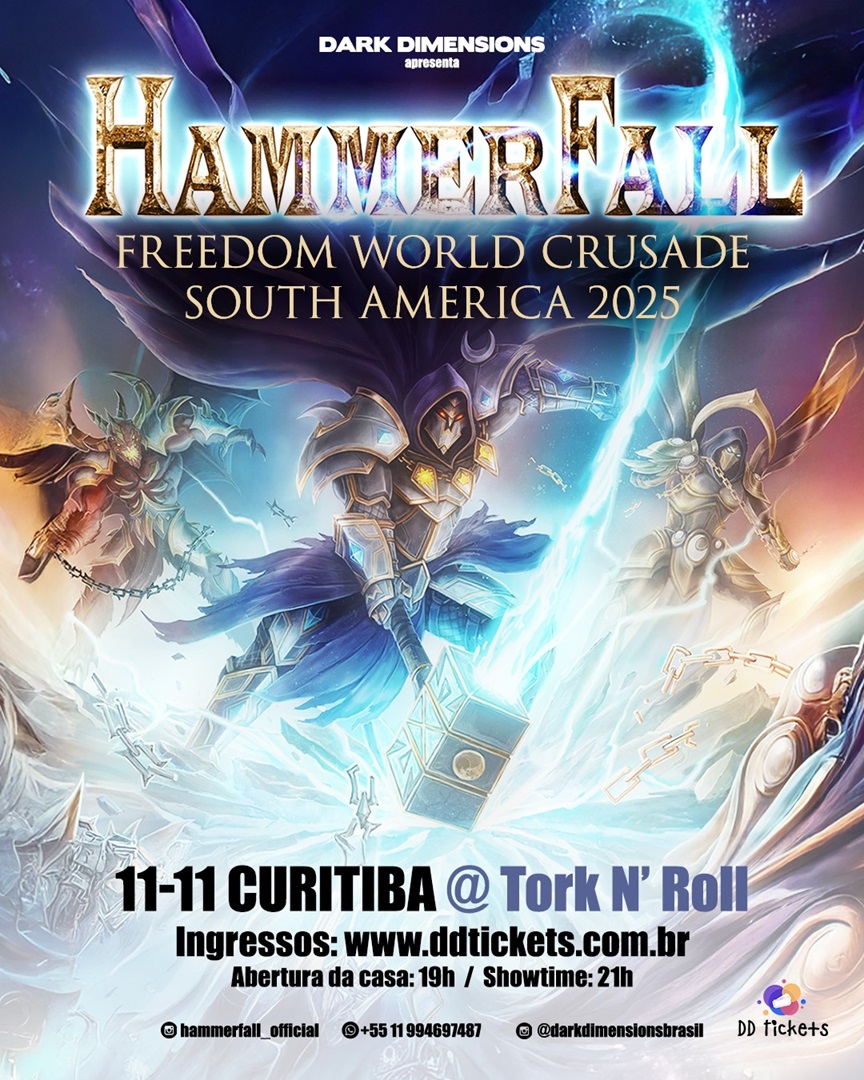 Com realização da Dark Dimensions, os suecos do Hammerfall retornam ao Brasil em novembro, e Curitiba é uma das cidades escolhidas para receber o show da tour “Renegade South America Crusade 2025″, que tem como foco, a divulgação do álbum Avenge the Fallen, lançado em 2024 pela Nuclear Blast Records, o 13º álbum de estúdio da banda.