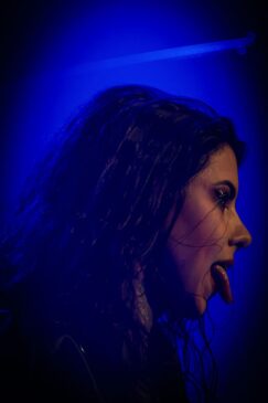 Nos vocais, Nienna Ni é uma entidade. Seu timbre, presença magnética e expressividade ritualística hipnotizaram o público — ela não apenas canta, ela incorpora o caos. Ao seu lado, o guitarrista e também vocalista Andre Damien sustenta a parede sonora com riffs cortantes e vocais complementares, criando uma dinâmica intensa e violenta.