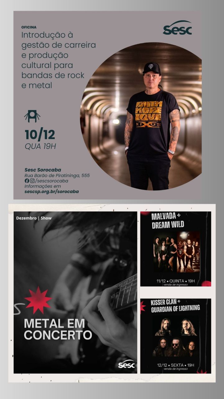 Guardian Of Lightning e Kisser Clan se apresentam no palco do teatro do Sesc Sorocaba a partir das 19h deste dia 12 de Dezembro. As vendas online dos ingressos já estão esgotadas.
