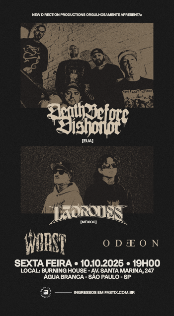 “As bandas Death Before Dishonor (Boston, EUA) e Ladrones (México) se apresentam em São Paulo/SP nesta sexta-feira (10 de outubro) no Burning House, um evento que reúne dois nomes representativos da cena hardcore e do rap internacional. A produção é da New Direction Productions.