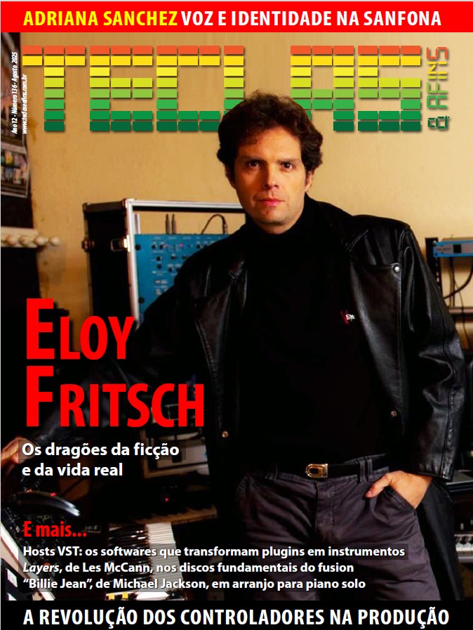 O tecladista e compositor gaúcho Eloy Fritsch estampa a capa da mais importante revista sobre teclados do Brasil, a Teclas & Afins (nº 136), onde apresenta ao público seu novo álbum instrumental, “Dragons and Wizards”, lançado em julho. Na entrevista, o músico relembrou os desafios que antecederam o lançamento do álbum. O tecladista enfrentou a destruição de seu estúdio em 2023, após um ciclone, e em 2024 voltou a ter o processo interrompido pelas enchentes históricas no Rio Grande do Sul. Apesar das perdas materiais, conseguiu salvar seus instrumentos principais e dar continuidade às composições.