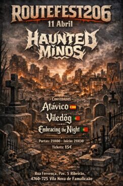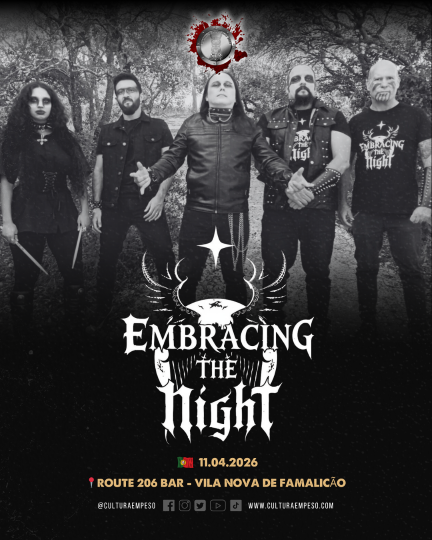 Integrando o cartaz do RouteFest206, os EMBRACING THE NIGHT assumem o papel de trazer a vertente mais sombria da noite ao Route 206 Bar, prometendo uma atuação poderosa, imersiva e carregada de intensidade do início ao fim.