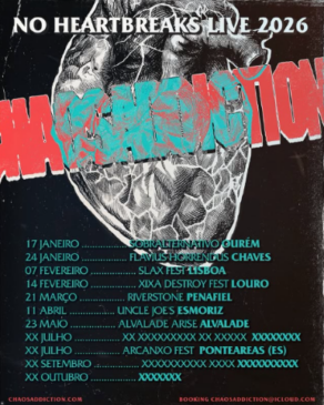 “Obrigado à Cultura em Peso! Apanhem o nosso álbum a 28 de março nas plataformas de streaming e comprem-nos a rodela (e vejam as nossas datas) em www.chaosaddiction.com. Into chaos!”