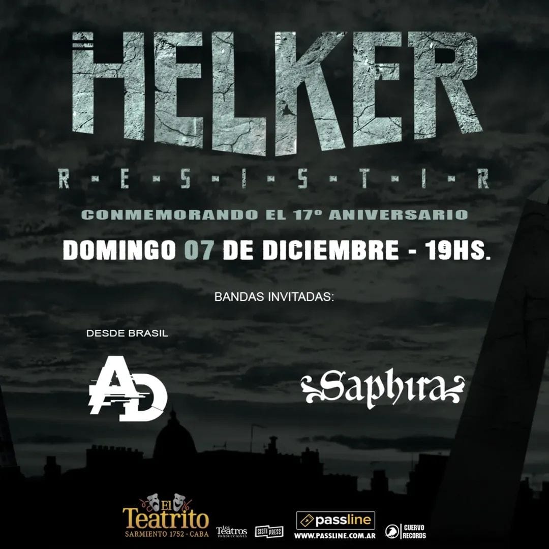 Sim, estamos muito felizes. Tocaremos no dia 7 de dezembro no El Teatrito com algumas bandas convidadas incríveis, incluindo uma ótima banda brasileira como Armored Dawn, e também Saphira, outra banda convidada. Tocaremos no dia 7 de dezembro no El Teatrito, Sarmiento e Callao, aqui em Buenos Aires. Estamos comemorando o 17º aniversário do álbum “Resistir”, um álbum crucial na discografia do Helker e na história da banda. Então, estamos muito felizes em poder celebrar essa noite com todos os nossos amigos, nossos fãs. Com certeza será uma noite, uma despedida de ano, que entrará para a história dos shows do Helker como uma das melhores. Então, vemos todos vocês lá.