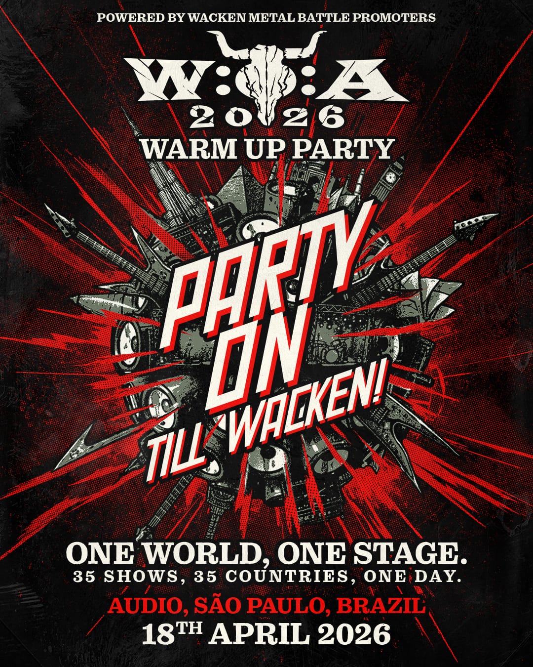 O Party On Wacken 2026 propõe levar esse espírito para diferentes territórios por meio de shows ao vivo, eventos temáticos, ações especiais e conteúdos oficiais, respeitando as particularidades de cada cena local, mas mantendo uma identidade global unificada pela paixão pelo metal.