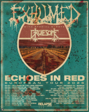 Além disso, durante esta tour europeia, os Exhumed são acompanhados pela banda Gruesome, que também subirá ao palco do SWR no dia 30 de abril, garantindo um aquecimento perfeito para a dose de caos sonoro que os fãs experimentarão com Exhumed no dia 1 de maio.