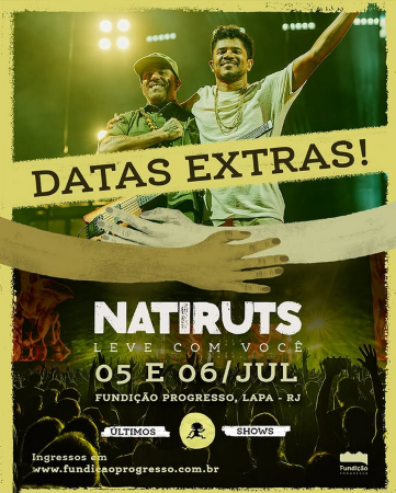 O adeus está marcado. Após quase três décadas de trajetória, o Natiruts escolheu a Fundição Progresso palco que se tornou praticamente uma extensão da banda para dois shows especiais da turnê de despedida “Leve com Você”. Nos dias 05 e 06 de julho, o grupo retorna ao coração da Lapa, no Rio de Janeiro, para celebrar sua história ao lado do público carioca em noites que prometem transbordar emoção, boas vibrações e aquela nostalgia que só a música proporciona.