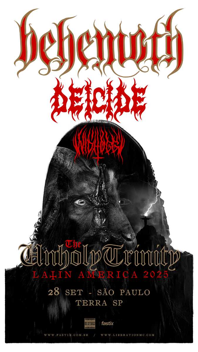 LIBERATION MUSIC COMPANY apresenta BEHEMOTH, DEICIDE e NIDHOGG no Brasil, com a tour” THE UNHOLY TRINITY LATIN AMERICA TOUR” e promete incendiar a América Latina em Setembro de 2025.Capitaneados por NERGAL, este novo disco é considerado um dos mais viscerais da banda e vem sendo tratado como sua obra prima.