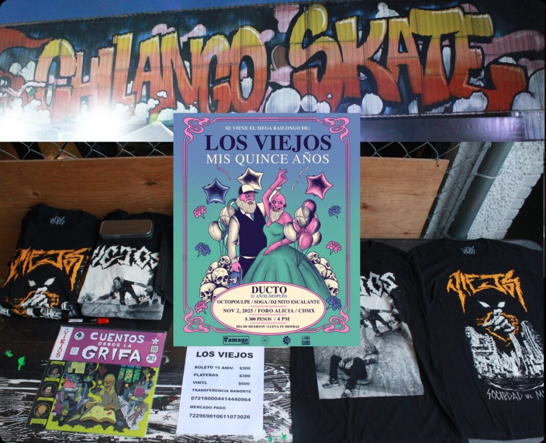 Los Viejos , una banda mexicana que juega con el punk, skate y thrash celebrará sus XV años, y el pasado 8 de agosto iniciaron la venta de boletos para este evento con una tarde de skate y convivencia.
