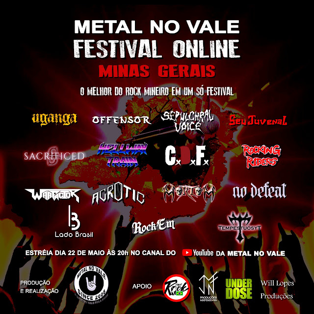 Neste sábado dia 22 de maio às 20h, estréia no Canal YouTube da METAL NO VALE o METAL NO VALE Festival OnLine Minas Gerais.