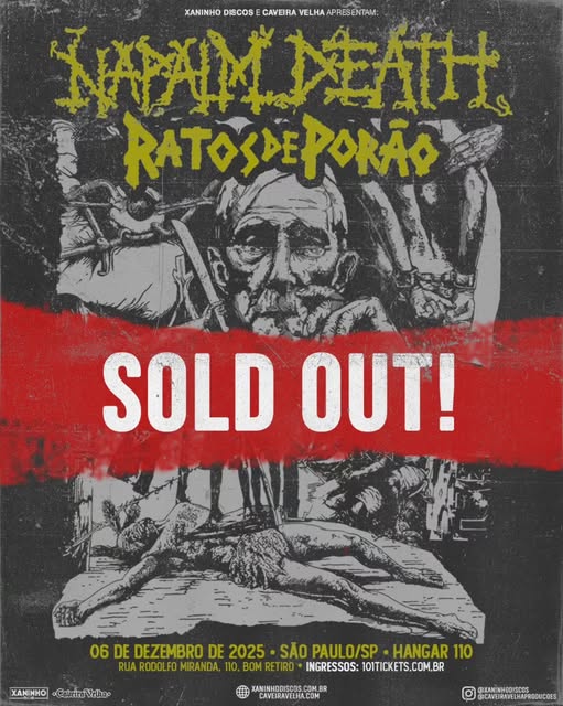 XANINHO DISCOS e CAVEIRA VELHA PRODUÇÔES orgulhosamente apresentam o sempre brutal NAPALM DEATH no Brasil.