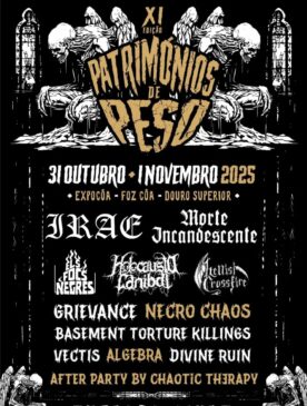 O Patrimónios de Peso volta a afirmar-se como um dos eventos mais especiais da cena nacional: dois dias de música extrema, entrada totalmente gratuita e um ambiente único.