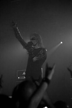 O ritual começou com “Riders of the Apocalypse” e “Ash of Ages“, desencadeando um frenesi em uma plateia que não parava de balançar a cabeça. Com o local praticamente lotado, a conexão entre a banda e o público foi imediata. O setlist progrediu com faixas como “Slaves“, “Through Eyes of Stone” e “Shadow Point“, faixa de seu álbum mais recente, The Wolf and the King. Este último soou brutal: cru, frio e intransigente, combinando perfeitamente com a estética e o discurso de toda a apresentação.