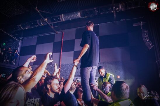 De volta a “Abyss Pt I”, veio “Human” que arrancou da plateia mais um wall of death para acompanhar o caos que antecede o contrastante último refrão – que, apenas com um som de piano em background, colocou Christoph a cantar calmamente com o público para fechar este tema épico. Ainda com as palmas do final do tema anterior a ecoar, começou a ouvir-se a introdução de “Good Stories”, do álbum “Arms“ (2018), que antecedeu o tema “H.A.T.E.”, criado conjuntamente com os Any Given Day para o álbum “Limitless” (2024) dos mesmos e para o já mencionado “Abyss Pt II”.