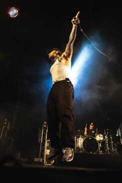 Já perto do fim do concerto, Inglês (vocalista) faz questão de se unificar ainda mais com o público, descendo do palco e participando no circle pit mais potente do concerto.