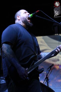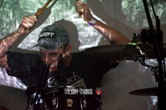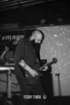 De volta ao palco secundário, os chilenos do Occultum, que, se falarmos de impacto cênico, Ocultum foi, desse ponto de vista, a banda que ofereceu o set mais espetacular. O palco estava lotado e a resposta do público foi imediata. Seu doom foi muito pesado, em alguns momentos claramente monolítico, mas sem se tornar inacessível. O segredo estava em como eles misturavam essa densidade com elementos reconhecíveis: ritmos que remetem ao doom de antigamente, uma sensação de saudade e uma narrativa sonora que permitia conectar-se mesmo nos momentos mais densos. Não era uma parede impossível de atravessar, mas um peso que se deixava habitar. Ao terminar, ouviu-se da plateia: “Viva Chile!” Essa banda foi a quinta de nove bandas e, de fato, deu início à segunda metade do festival, com o público já muito animado.