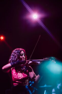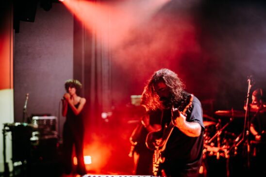 A vocalista Ana Isola demonstrou, mais uma vez, ser uma verdadeira performer. Vive cada canção como se habitasse no próprio universo que narra. Cada gesto, cada expressão e cada olhar transmitem a intensidade das histórias que a banda conta, e o público sente isso. Desde cedo, a plateia reagiu com entusiasmo, alimentada pela constante interação da vocalista e restantes membros, que nunca deixaram a energia abrandar.