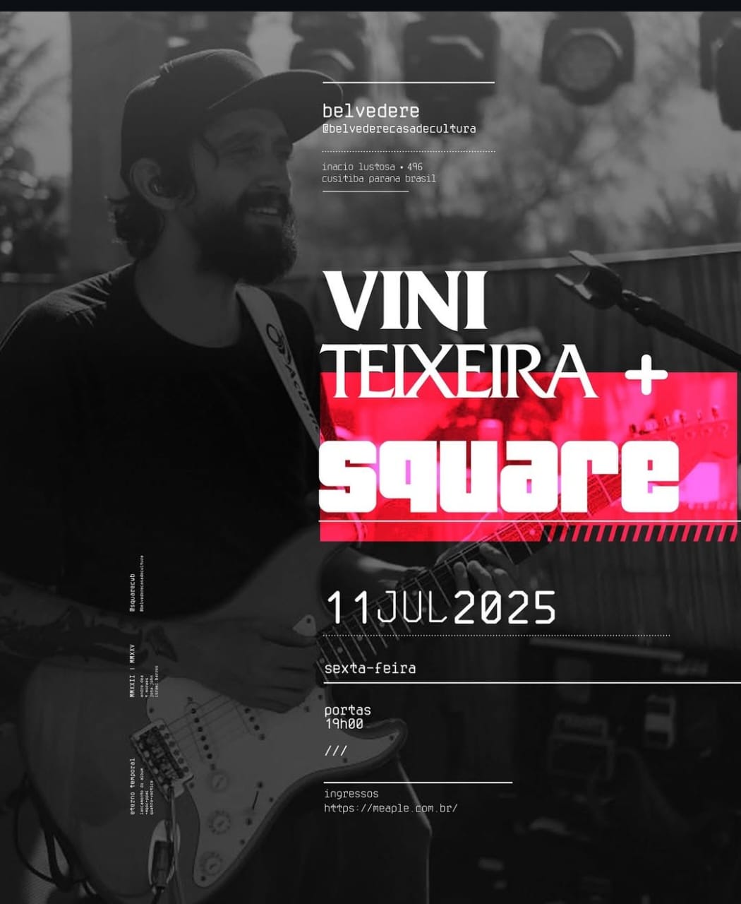 O show do Square em Curitiba, que acontece dia 11/07, no Belvedere Casa de Cultura, anuncia o músico que dará início à noite. Figurinha carimbada da cena curitibana, o músico Vini TX, começa os trabalhos nessa sexta-feira com seu violão, tocando músicas autorais e clássicos do hardcore.