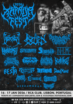 Nos dias 16 e 17 de janeiro de 2026, o Xapada Fest recebe 20 bandas durante dois dias intensos de grindcore, death metal e brutalidade sonora, reunindo alguns dos nomes internacionais e nacionais.